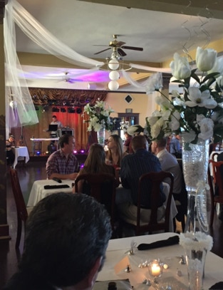 Fee includes 12 hours onsite day of event and one-hour rehearsal the night before usually 5 pm. (4 hours onsite day of event for ceremony only). Use of tables, chairs, sound system.